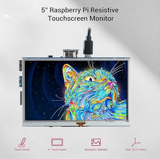 【ラズパイにぴったり&LCD ディスプレイ】5インチタッチモニターはラズパイの愛好者にぴったりです。5インチの小型モニター、背面の基盤部分にラズパイの基盤を気軽に固定できます。軽量で携帯しやすいです。解像度は800 * 480です。LCD ディスプレイなので、省エネとブルーライト軽減ができ、お気軽に使えます。