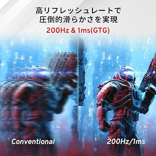 [画面] 23.8インチ / FHD(1920×1080) / Fasr IPSパネル / 200Hz / 1ms(GTG) / sRGB 112% / 非光沢