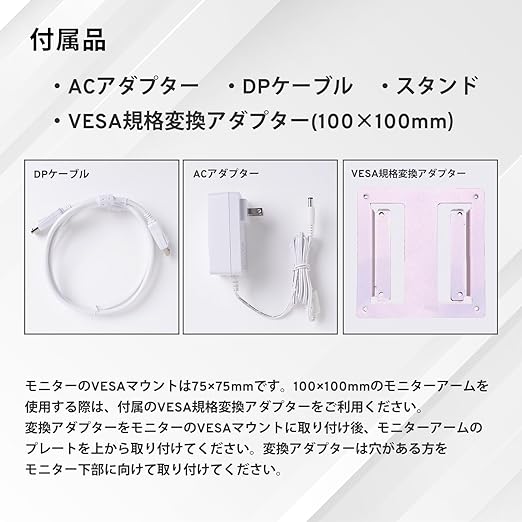 [機能] AMD FreeSync Premium / G-SYNC compatible / Flicker Free / VESAマウント(75mm) / ブルーライトカット / Overdrive / Black Equalizer / スピーカー内蔵(3W ×2)