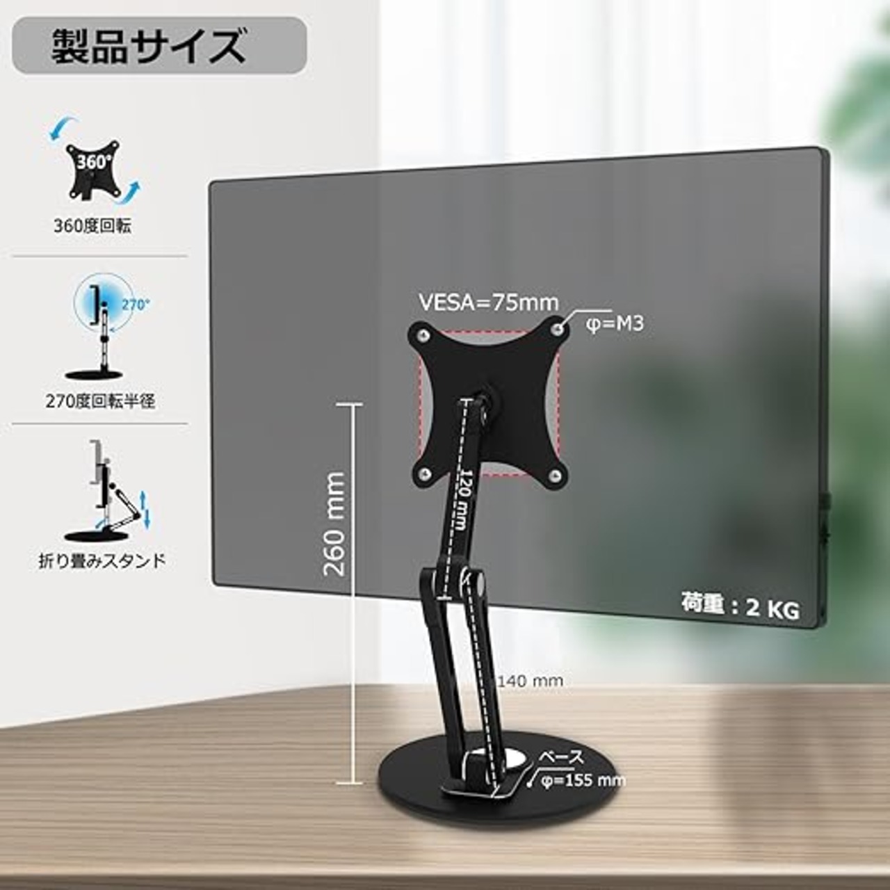 【幅広い互換性】このデスクトップタブレットホルダーは16インチのポータブルモニターに対応しています。18インチの75㎜4Mモニターに適しています。