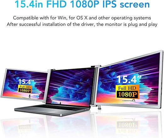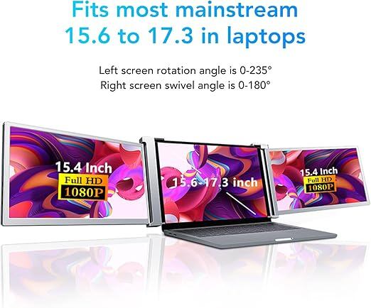 15.4インチ ノートパソコン スクリーン エクステンダー | フルHD IPS 1080P トリプル ポータブル モニター | デュアル モニター エクステンダー | 15.6-17.3インチ Win、OS X ノートパソコンに対応 | タイプC/USB A/HDMI | プラグアンドプレイ2