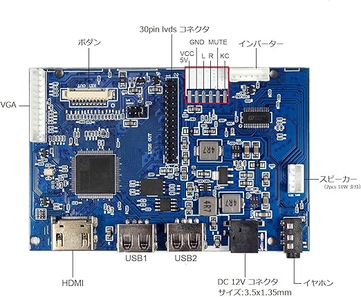 HDMI Audio LCDコントローラ基板;サイズ: 約74x53x12mm;画面 360°回転支持;Audio出力:イヤホン、(4Pin 1.25mm ピッチ 8ohm 2W あるいは 4ohm 2W)