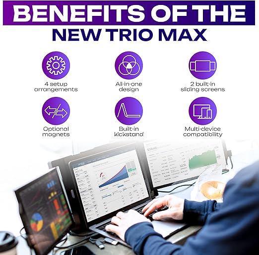 MP Mobile Pixels Trio Max 14.1インチ ポータブルモニター ノートパソコン用トリプルモニター 1080P FHD IPS プラグアンドプレイ 15-17.3インチのノートパソコンに最適 キックスタンド内蔵 マグネットオプション (3画面)2