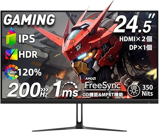 【ご注意・安心なサポート】①200hzは最大のリフレッシュレートです。デフォルトが60hzの場合があります。接続端末のスペックによって、200hzまで行けない場合があります。また、同じ端末でも、接続方法(HDMI経由か、DP経由か)によって最大リフレッシュレートが異なる場合があります。リフレッシュレートはモニターではなく、接続端末で設定します。②商品は出荷前に全数検品しましたが、万が一初期不良や、付属品漏れがある場合、弊社にご連絡ください、責任をもって対応いたします。③商品に関してもし何かご不明な所がございましたら、いつでもお気軽にお問い合わせくださいませ、弊社はアマゾンだけでなく、メールと電話でも対応できます。ご購入後も、お客様のすぐ隣でサポートいたします。保証期間内に故障が発生した場合(不適切な使用による破損を除く。また、検証が必要な場合あり)、無料で部品・本体交換対応できます。