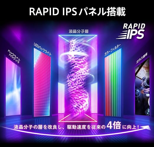 従来のIPSと比べ4倍速い駆動速度で、高画質な映像と高速応答の両立を実現しました
