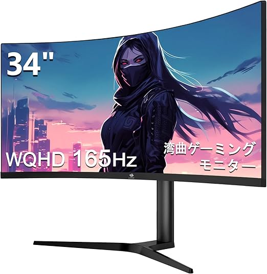 ウルトラワイドモニター ゲーミングモニター 165Hz 34インチ ディスプレイ 曲面 LED WQHD 21:9 3440x1440/非光沢/VAパネル/1500R/HDR(標準輝度:300cd/㎡)/1ms/FreeSync/HDMI/DisplayPort/スピーカー内蔵 Z-EDGE UG34 | PCBASE