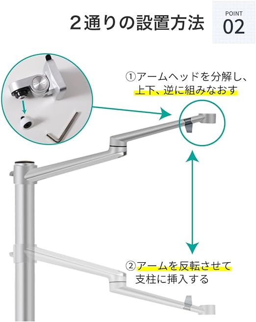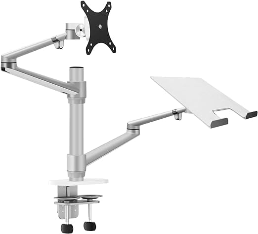 デュアルアーム: VESAマウントおよびノートPCホルダーはクイックリリース機能付きで取り付け・取り外しがとても簡単に行えます。 ノートパソコンとモニターを左右入れ替える場合でも工具なしで取り換えも簡単に行うことができます。