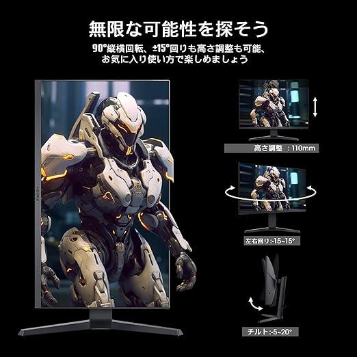 [ 機能 ] AdaptiveSync 対応 / HDR / アンチグレア / VESAマウント(75mm) / ブルーライトカット / 内置スピーカー非搭載 / 傾斜 /高さ / 縦横回転調整 / ジョイスティック OSDAdaptiveSync