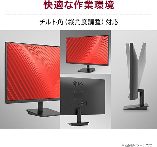 【快適な作業環境】 チルト角(縦角度調整)対応 前 -5°〜後 15°のチルト(角度調整)に対応。 姿勢や使用環境に合わせた画面の配置が可能です。
