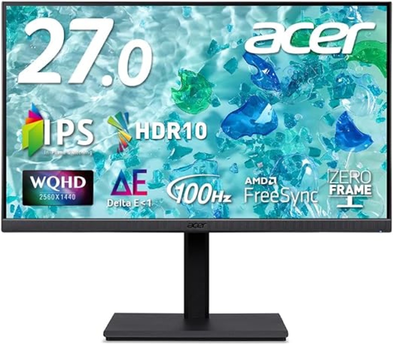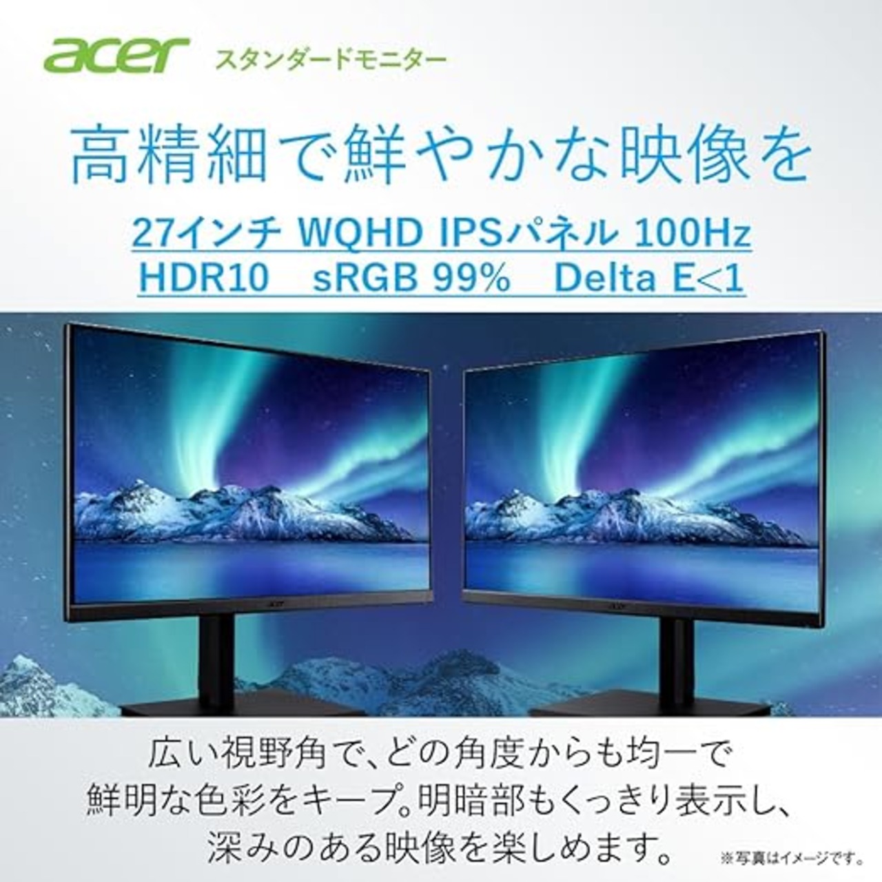 Acer スタンダードモニター Vero 27インチ WQHD IPS 100Hz DeltaE<1 sRGB99% HDR10 高さ調整 ピボット HDMI2.0 DisplayPort USBハブ VESA スピーカー ブルーライトシールドプロ エコデザイン 再生プラ90% B277UEbmiiprzxv | PCBASE