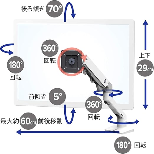 エルゴトロン HX デスクモニターアーム ホワイト/白 49インチ(9.1〜19.1kg)まで対応 45-475-216