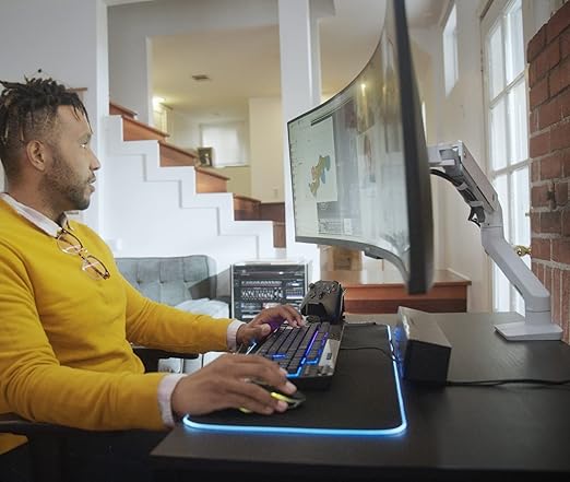 最大19kgまでのモニターやTVをマウントできるモニターアームです。ウルトラワイド湾曲モニターやゲーミングモニターにも対応。