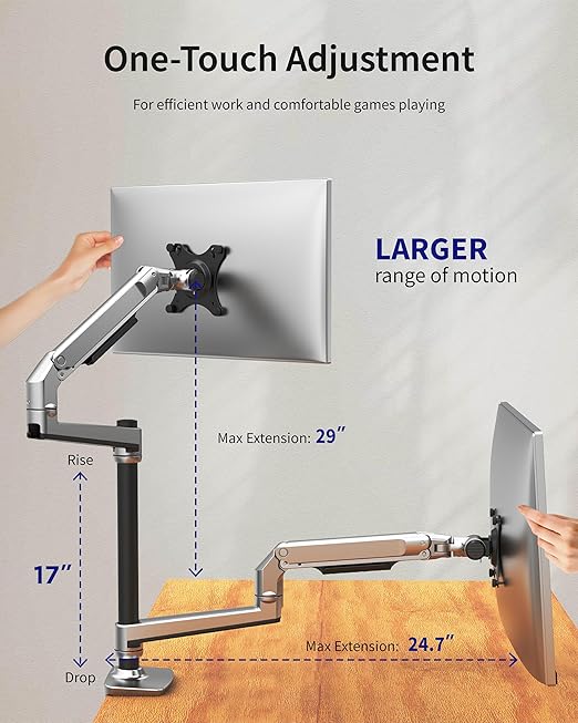 【素早い組み立て & 人間工学に基づいた設計】 E66デュアルモニターマウントは、取り付けが簡単なだけではありません。 また、人間工学に基づいたデスクモニターマウントとして、姿勢に関連する問題を和らげることで、私たちを快適にするために設計されています。