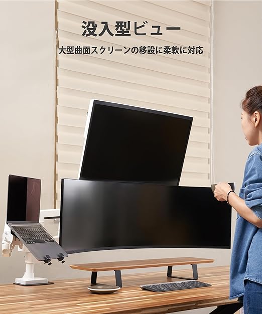 ウルトラワイドモニターに適合 - 最大20キロ(44ポンド)の重さのモニター1台を保持。最大57インチのウルトラワイドモニターと、49から24インチの平面、1000Rまでの曲面のスクリーンに対応。クイックリリースVESAブラケットは75x75mmと100x100mmの取り付けが可能です。