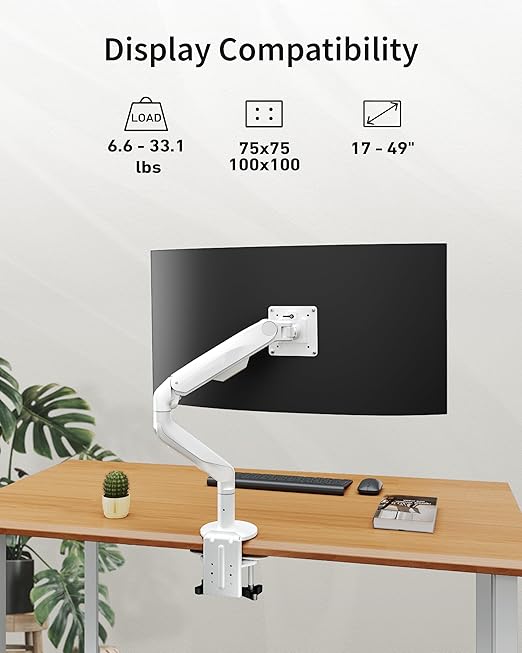 【ユニバーサルコンパチビリティ】 G6ホワイトモニターアームは、15kgまでのほとんどのスクリーン(ゲームモニターを含む)に対応し、最大49インチのサイズに対応しています。また、100 x 100 mmおよび75 x 75 mmのVESA規格にも対応しています。