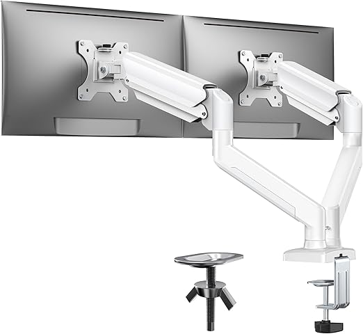ErGear モニターアーム デュアル 2画面 ホワイト 白 17〜32インチ対応 耐荷重各10kg ガススプリング式 ディスプレイアーム PCアーム ロング VESA 75x75mm 100x100mm対応 クランプ式 グロメット式 多角度調節 配線収納 | PCBASE
