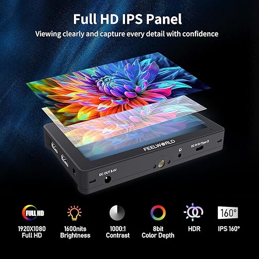 【フルHD&1600cd/m2高輝度】F5PROXは、コントラスト比1000:1、1600nitの高輝度フルHD 1920x1080 IPSパネルを搭載しています。 太陽光の下でも画面を鮮明に表示し、細部まで撮影することができます。