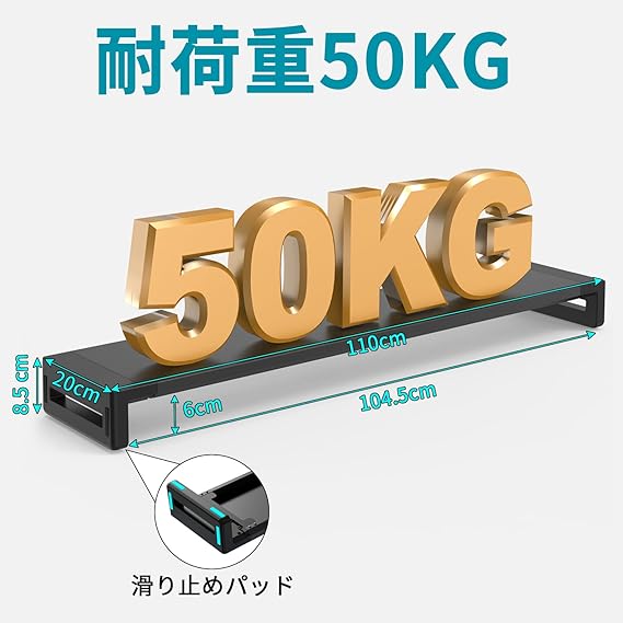 三つの幅調整可能のPCスタンド:100cm、105cm、110cmの3つの幅で調整可能です。 パソコンのモニターを8.5cmまで上げることにより、科学的な視覚高さは背中を曲げることを避けられ、首や背中の疲れを効果的に和らげることができます。