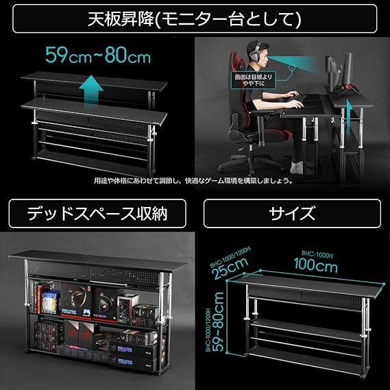 Bauhutte( バウヒュッテ ) エクステンションデスク 昇降式 モニター台 ディスプレイ スタンド ( 幅 120 × 奥行 25 cm 高さ 59~80 cm ) ブラック BHC-1200H-BK | PCBASE