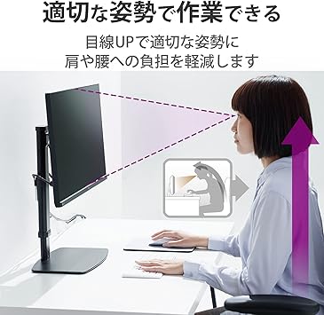 最適な目線に合わせて高さ調整できる液晶ディスプレイスタンドです。