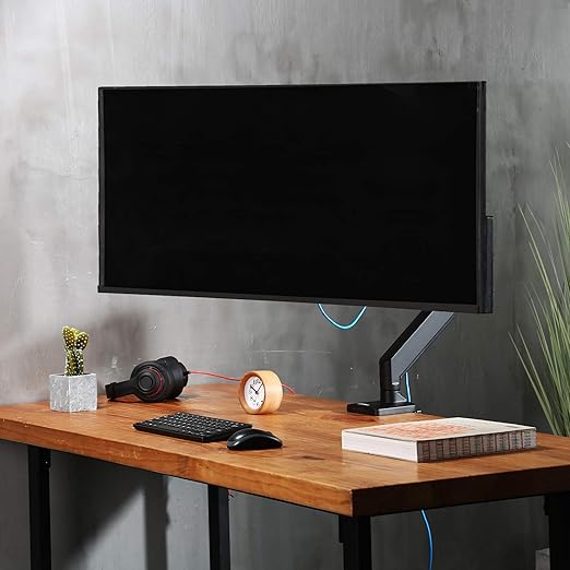 【快適PC作業】ガススプリングアームにより、モニターの位置を目線に合わせて簡単に調整できます。 気を散らすものを排除し、整頓されたデスクに集中して生産性を向上させます。VESA取り付けプレート最高位置58.5cmです。