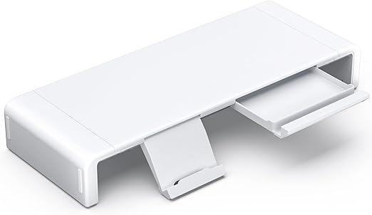 Klearlook モニター台 机上台 耐荷重50kg 折りたたみ式 三段階の幅調整可能 ノートパソコンスタンド モニタースタンド デスクスタンド キーボード収納 引き出し スマホ・タブレットトレー -ホワイト | PCBASE