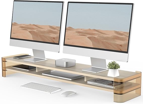 Fenge モニター台 モニタースタンド 卓上 机上台 パソコン台 PC台 机上ラック 110cm横幅 2段 木製天板 アクリル製脚 デスクトップ用 机上 モニタースタンド 机上台 pcモニター台 パソコンラック 卓上 収納 整理整頓 オークG04T2103C | PCBASE