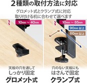 グロメット式とクランプ式の両対応なので取り付ける机に合わせて選べます。 ■モニターからのケーブルをすっきりまとめることができるケーブルホルダー付です。