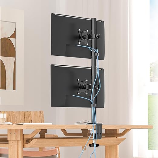 【商品仕様】本製品は最大35インチまでの液晶ディスプレイを上下に2枚配置できるデュアルモニターアームです。最大の特徴は80cmのロングポールを採用しており、高い位置にモニターを配置することができます。対応モニター:17〜35インチ 耐荷重:12KG*2 VESA規格:75×75/100×100mm。