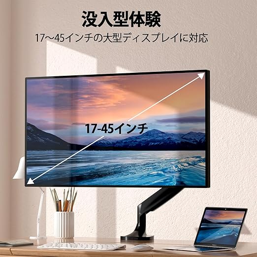 WORLDLIFT PCモニターアーム 17-45インチ対応 耐荷重1-15kg 液晶ディスプレイルアーム アルミニウム合金製 シングルアーム グロメット式&クランプ式 多角度調節 ケーブル収納 | PCBASE