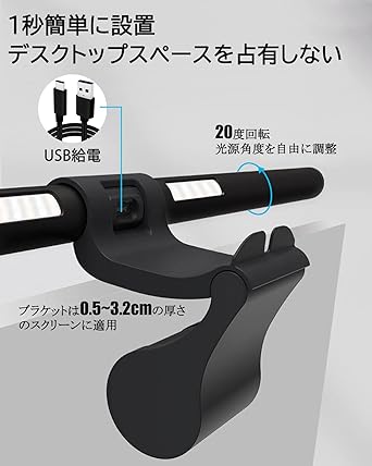 【スペース節約?0.5‐3.2cm厚さのモニター適用】モニター上に簡単に引っ掛けでき、デスク上のスペースをもっと有効に使えます。本品の長さ:41cm。最新版滑り止めクリップを採用、適合するモニターの厚さは0.5‐3.2cmまで対応します。安定して固定できると同時に、モニターの裏側を傷つけません。本品は初期不良や故障があれば、また何か不明なところがございましたら、お気軽にお問い合わせください。