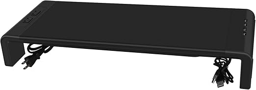 EAYHM モニター台 4*USB2.0 & 2口コンセント付き パソコンモニタースタンド キーボード収納 PC机上台 アクリロニトリルブタジエンスチレン (ABS)製 幅(42/47/52CM)三?可?x奥行20×高さ8cm 組立かんたん (Large) | PCBASE