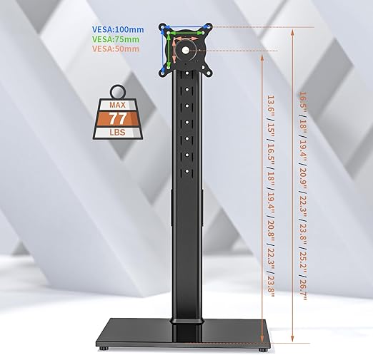 シングルモニタースタンド 自立型 27~43インチ モニターアーム 曲面スクリーンモニターマウント 強化ガラスベース 調節可能なモーションチルト-15°から10°回転 ±45°回転 360°耐荷重 75ポンド HT05B-003 | PCBASE