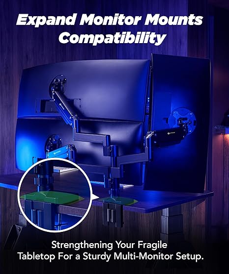 モニターマウントの安定性を向上 - 当社の18x15センチ(7x6インチ)の補強プレートは、重量をより広い面積に分散し、薄いテーブルトップを強化して堅牢なマルチモニターセットアップを実現します。