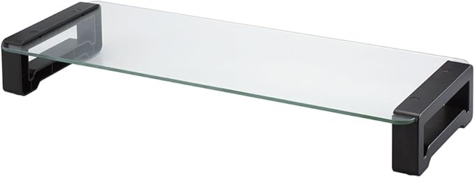 机上をスッキリ、広々と使えるガラスモニタースタンド。