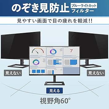 ■【プライバシー保護】視野角 60度、正面から見ると画面はクリアでも、隣の席からは真っ暗に映る偏光性を有する「覗き見防止フィルター」です。【対応機種】24インチ 16:9 フィルター部分のサイズ:536mm x 303mm (縦幅/横幅のばらつき:+/-1mm程度)。画面とベゼルの高低差により画面がややぼやけて見える場合がございます。)