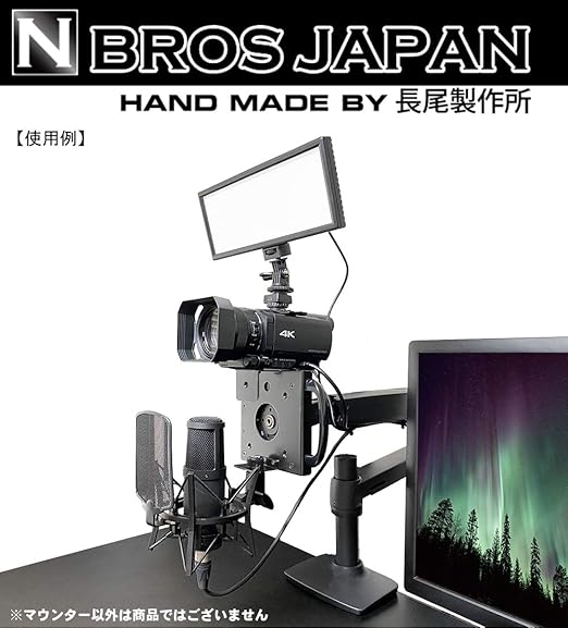 動画制作やWeb会議、オンラインミーティングなどに最適なモニターアーム用カメラ&マイクマウントです。