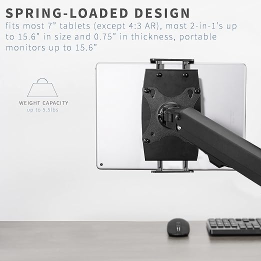ユニバーサルタブレットマウント - この汎用性の高いアダプターマウントは、ほとんどの7インチタブレット(4:3 ARを除く)、最大15.6インチ、厚さ0.75インチまでの2-in-1、15.6インチまでのポータブルモニターと互換性があります。 75x75mmまたは100x100mmの穴パターンのVESAマウントに適合します。 --特許出願中--