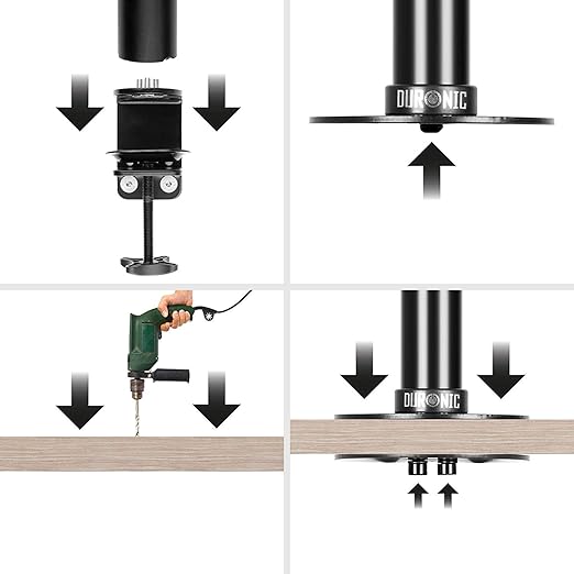クランプ以外の設置方法 こちらの商品はDuronic標準のクランプがお持ちの机と合わない際にご使用いただける アイテムです。グロメットは机の表面から穴を通して設置するマウントです。