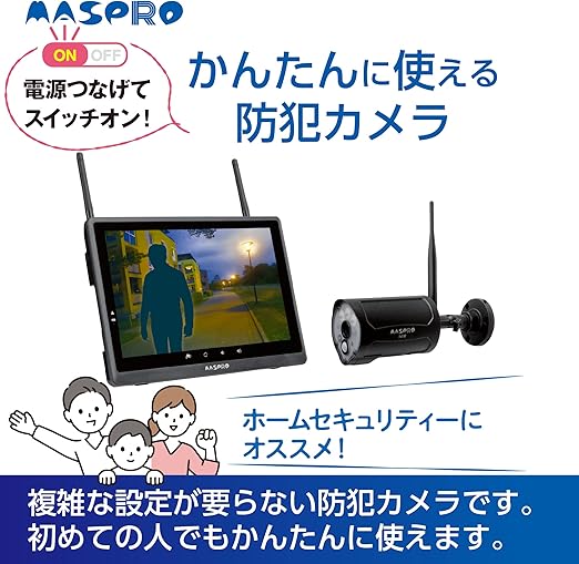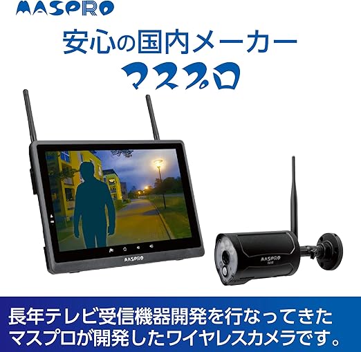 マスプロ電工(MASPRO) モニター&ワイヤレスHDカメラセット 10.1インチモニター フルハイビジョン 夜間撮影対応 人感センサー モーション検知 赤外線投光器内蔵 センサーライト機能 警告音 通話機能 WHCBL10ML | PCBASE