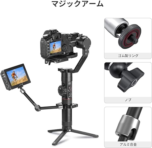 このマジックアームは、耐久性に優れた素材で、最高レベルの品質基準に沿って作られているため、驚くほど使い勝手が良いアイテムです。1/4インチネジ(カメラ小ネジ)に対応していますので、小型LEDライト、外付けモニターやモノブロックストロボなどへのカメラ搭載時により軽量かつコンパクトなセットへの切り替えが簡単に行えます。