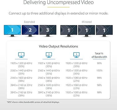 作業効率アップ:画面を増やして効率の良い作業環境を構成。オフィスや家庭で便利に使える小型MSTハブ。MSTテクノロジーは、GPU/ビデオカードの機能を使用して、非圧縮ビデオを伝送するため、必要最小限のシステムリソースで動作します。