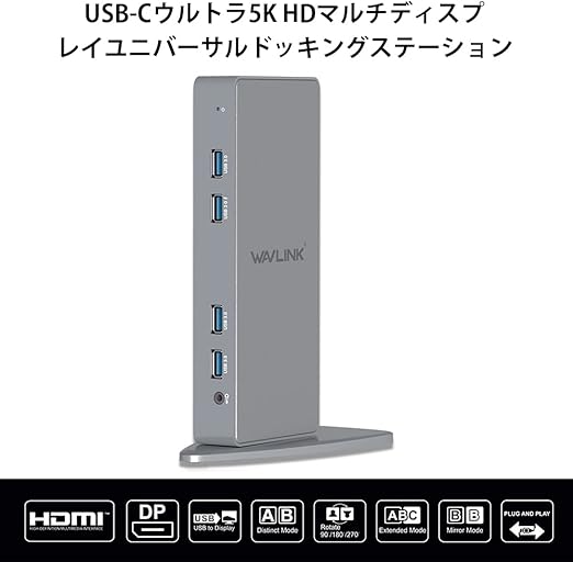 WAVLINK USB-C垂直アルミニウムUltra HD 5Kユニバーサルドック、HDマルチモニターユニバーサルドック、2つのHDMIおよびDisplayPortポート、ギガビットイーサネット、2つのtype-Cポート、4つのUSB 3.0、Microsoft Windows11/10およびApple Macをサポート オンラインで動作する | PCBASE
