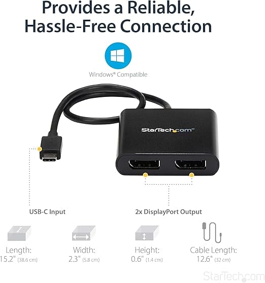 スターテック(STARTECH.COM) StarTech.com USB-C - DisplayPortマルチモニターアダプタ 2ポートMSTハブ 4K対応 2ポートDisplayPort Windowsのみ対応 MSTCDP122DP | PCBASE