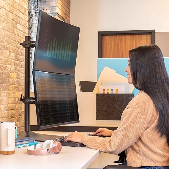 27インチまで、1モニター10.4kgまで/総重量20.9kgまでのモニターを縦 (上下) 方向に取り付けられます。