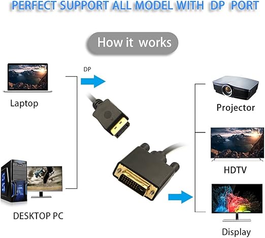 CRT、LCDモニター、プロジェクターなどの従来のDVIディスプレイと次世代のDisplayPortベースのPCやノートブックコンピューターとのインターフェース用のDisplayPortからDVIケーブルです。