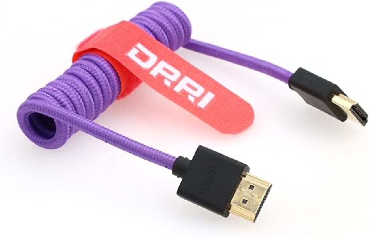 この紫色のナイロン高速編組 8K HDMI 2.1 ケーブルを使用して、ビデオカメラをオンカメラ モニターに接続します。 8K、60 Hz HDMI 2.0 18Gbps HDR メタデータ、および 3D ビデオをサポートします。