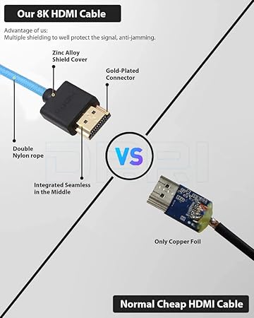 編組 8K HDMI - HDMI 2.1 超高速ケーブル。 この 8K HDMI 2.1 ケーブルは、48Gbps および HDR - 8K/60Hz 4K/120Hz を備えています。