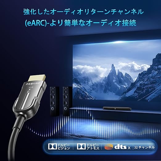 【8K光ファイバーHDMI 2.1ケーブル】これは8K@60Hz/30Hz、4K@120Hz/60Hz/30HzでHDMI 2.1を配信する最も信頼できる方法です。超高速で7680x4320までの最大解像度を提供し、HDMI 2.1規格の付いたすべてのデバイスに適用し、前の HDMI 2.0、1.4、1.3、1.2 及び 1.1 と互換性があります。
