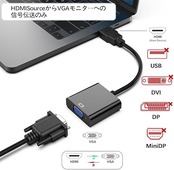 【ICチップは】内蔵の高度なICチップは、HDMIデジタル信号をVGAアナログ信号に変換します。電源は不要です、双方向コンバーターではなく、VGAからHDMIに信号を送信することはできません。